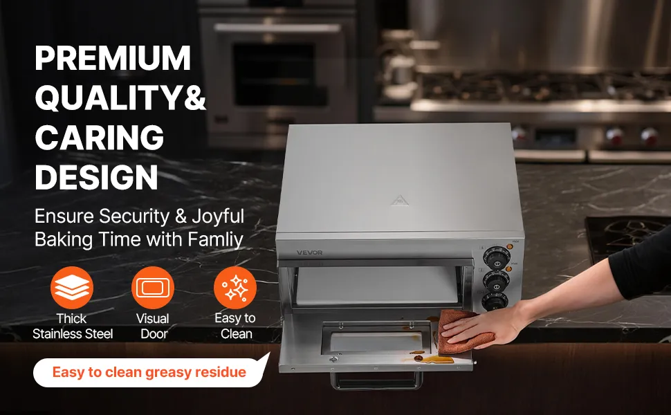 Forno elettrico per pizza di alta qualità: realizzato in acciaio inossidabile per uso alimentare, il forno elettrico per pizza VEVOR ti garantisce un'esperienza di cottura sicura e senza problemi.