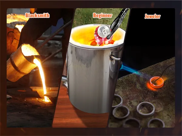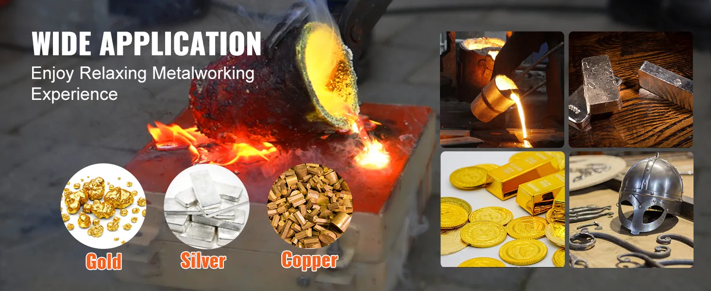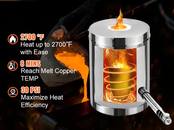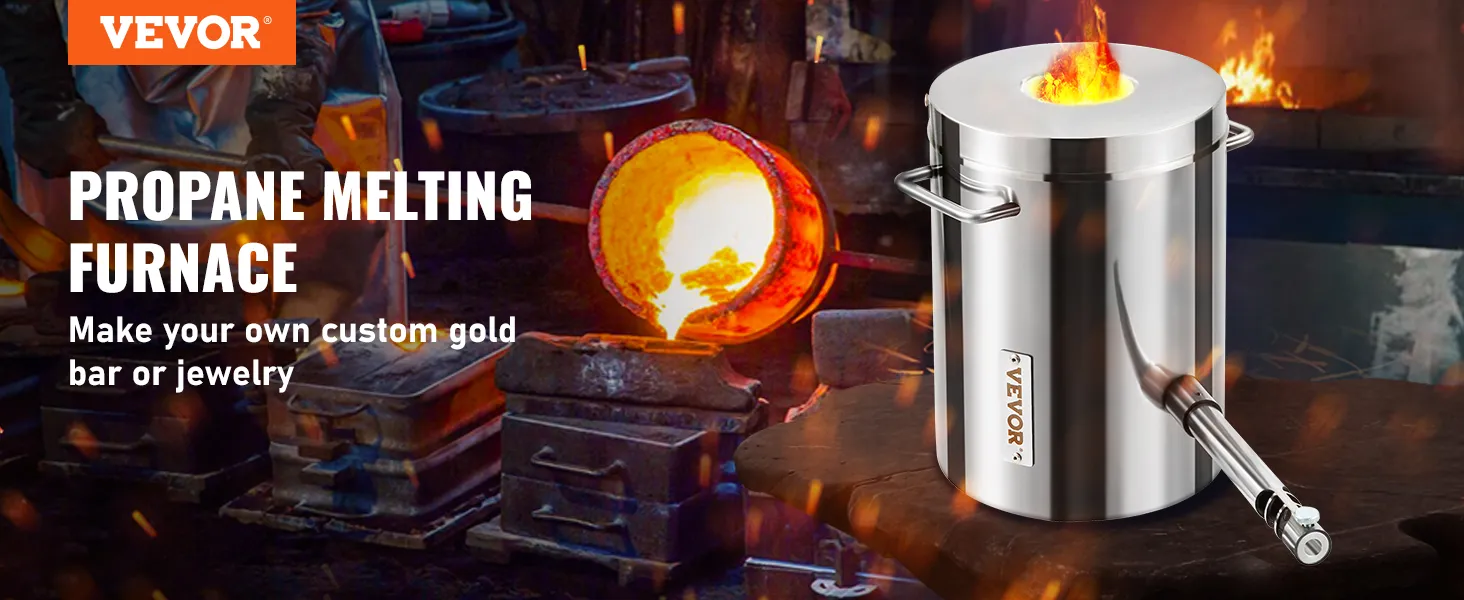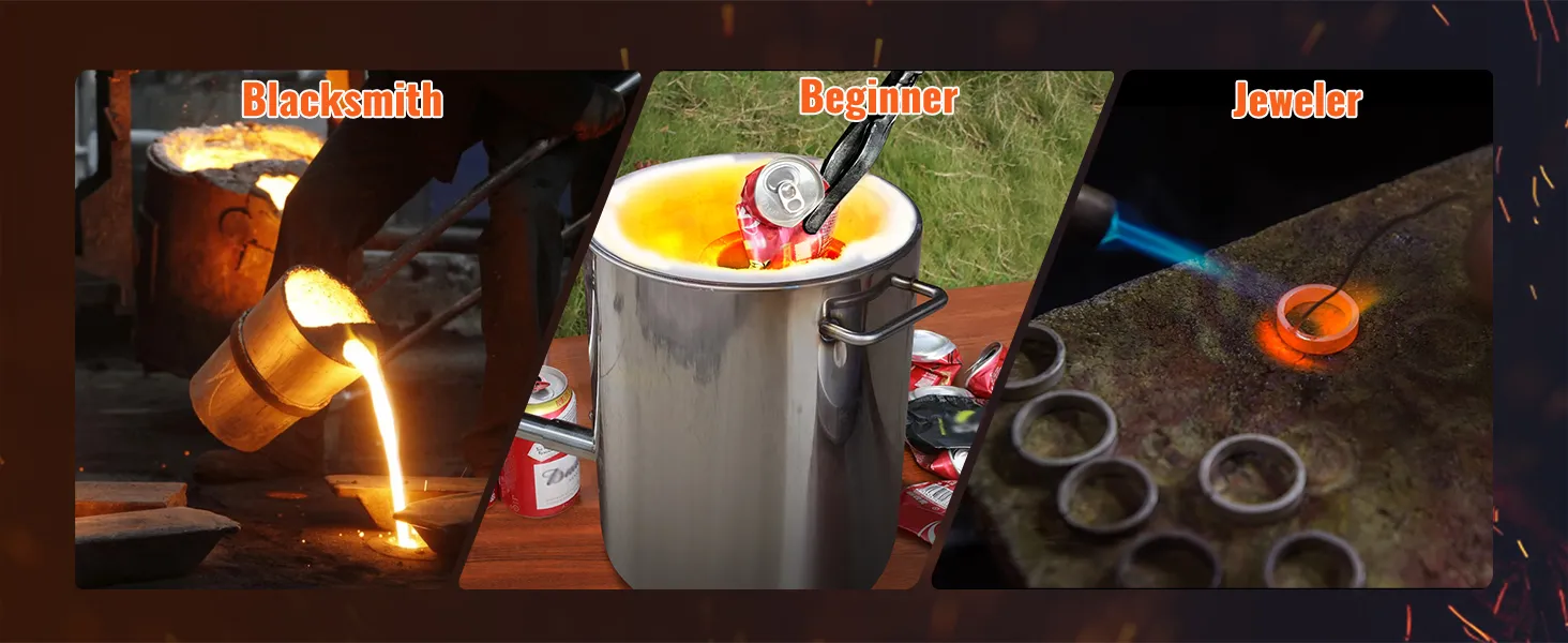 Struttura Stabile per L'Uso: si può trasformare direttamente quelle vecchie lattine di alluminio in vere bellezze. Ti aiuta persino a convertire quei frammenti di rame e ferro marcio in bellissime opere d'arte, e il valore verrà centuplicato immediatamente. Il forno fusorio a propano lavora in modo efficiente fondendo rame, alluminio, oro, argento e altri rottami metallici. È adatto anche per applicazioni di bricolage, fabbro e lavorazione di gioielli.