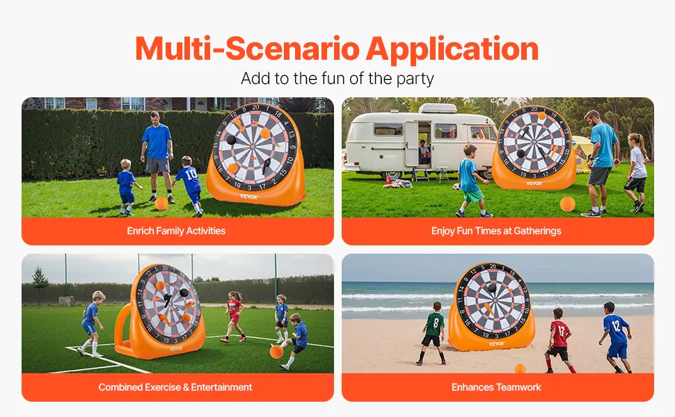 Che si tratti di una riunione all'aperto, una festa di compleanno, una gita in campeggio, una giornata in spiaggia o un intrattenimento per la famiglia, il gigantesco bersaglio gonfiabile per freccette e calcio regalerà infinite risate e interazioni a te e ai tuoi amici.