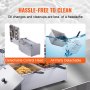 Pulisci con facilità: Nota: 1. Si prega di STACCARE qualsiasi pellicola protettiva in plastica bianca. 2. Assicurarsi sempre che la macchina sia pulita a freddo e asciutta prima di infilarla. 3. Utilizzare piastre di presa separate per ciascuna delle due spine per ridurre al minimo il rischio di interruzione imprevista di corrente (collegare a una presa a muro anziché a una presa di tipo piastra di cablaggio)