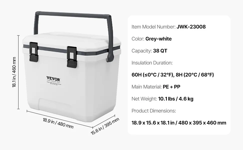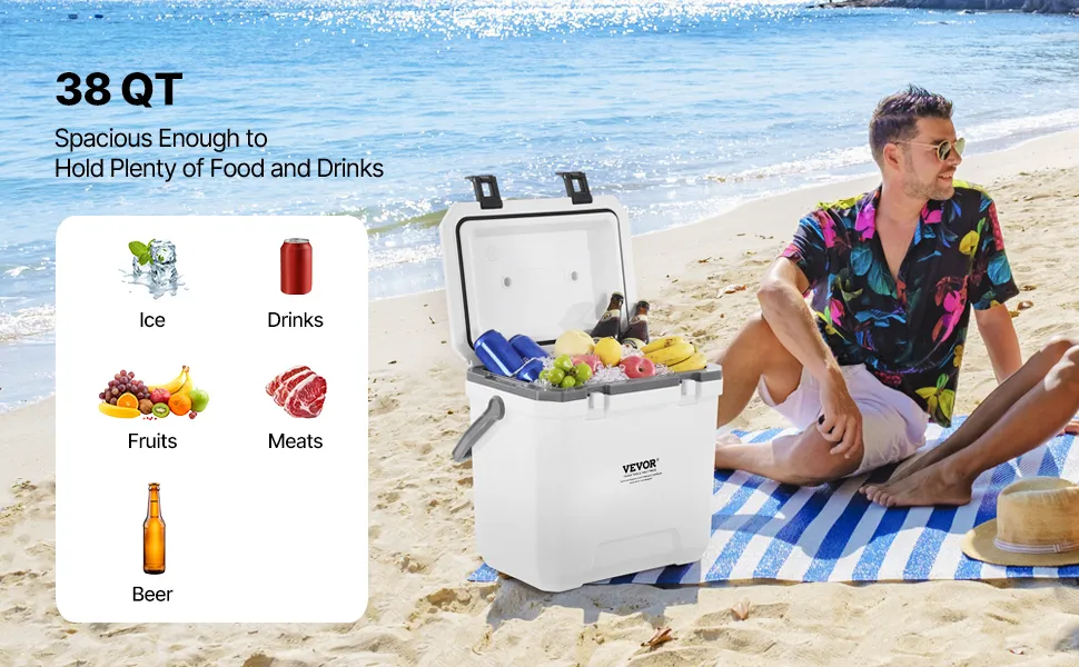 Questa ghiacciaia offre 38 quarti (circa 36 litri) di spazio di stoccaggio, offrendo ampio spazio per una grande quantità di cibo e bevande.