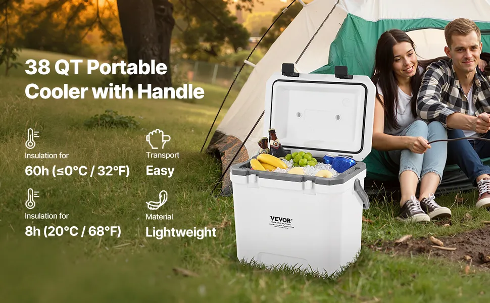Grande capacità da 38 QT: questo refrigeratore portatile vanta una capacità di 38 QT, contenendo fino a 54 lattine (330 ml / 11 oz). Ideale per lunghi viaggi, picnic in famiglia e altro ancora
