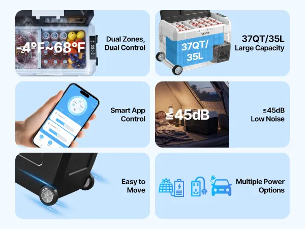 VEVOR Frigorifero Portatile a Compressore da Auto CC 12V/24V CA 100-240V, Frigo Portatile per Campeggio Viaggio Pesca Capienza 35 Litri Contenitore -20 a 20 °C Doppia Zona con Ruote Controllo APP