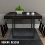 tavolo da pranzo moderno con gambe in acciaio VEVOR, piano nero e un vaso bianco al centro.