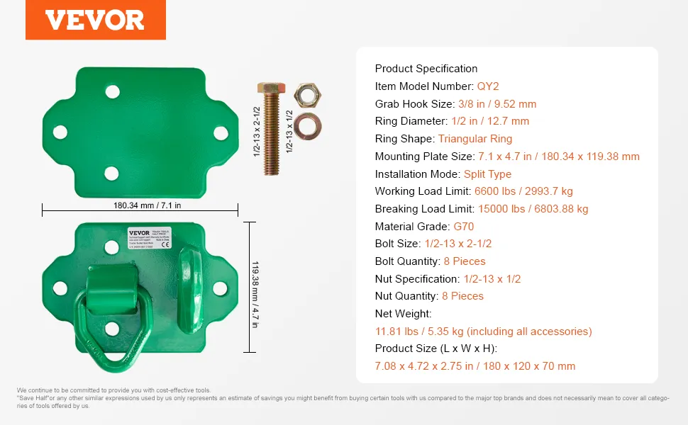 I ganci di presa del trattore utilizzano una dimensione di catena standard da 3/9", compatibile con la maggior parte dei veicoli come veicoli agricoli, benne per trattori e veicoli fuoristrada. Sono riutilizzabili e ideali per situazioni di emergenza.