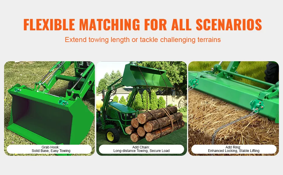 Facile installazione: i ganci di presa del trattore sono compatibili con catene da 3/8" e si adattano alla maggior parte dei veicoli, inclusi veicoli agricoli, benne per trattori e veicoli fuoristrada. Possono essere facilmente montati e smontati.