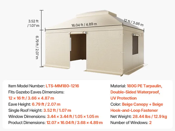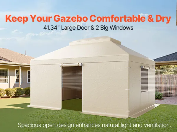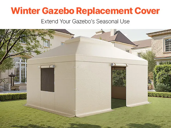 Adatto a gazebo da 3,7x4,8 m: questa copertura invernale per gazebo è progettata per gazebo a due livelli da 3,7x4,8 m (gazebo non incluso). Questa copertura sostitutiva per gazebo invernale presenta gronde lungo tutti e quattro i lati del tetto