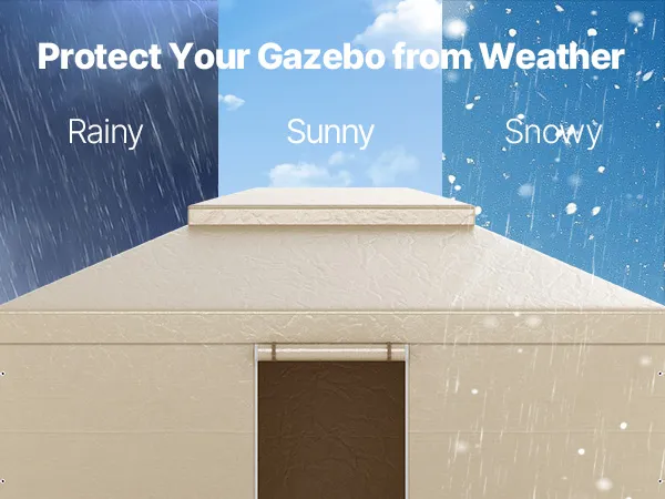 La nostra copertura per gazebo da esterno con rivestimento in PE bifacciale è resistente all'acqua, al sole e alla neve. Protegge il vostro gazebo durante le stagioni soleggiate, piovose e nevose, senza sbiadire o usurarsi.