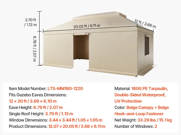 VEVOR Copertura Invernale per Gazebo, per Gazebo Rigidi da 3,68 x 6,11 m, Copertura a Due livelli per Tutte le Stagioni con Pareti Laterali e Finestre in Rete, per Ripari Chiusi, Gazebo non Inclusi