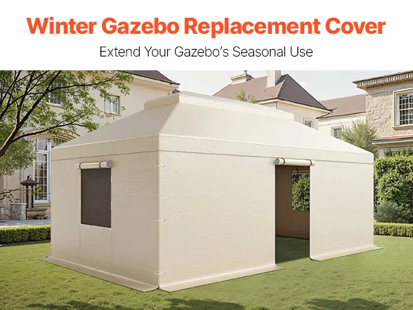 Adatto a gazebo da 3,6x6 m: questa copertura invernale per gazebo è progettata per gazebo a due livelli da 3,6x6 m (gazebo non incluso). Questa copertura sostitutiva per gazebo invernale presenta gronde lungo tutti e quattro i lati del tetto