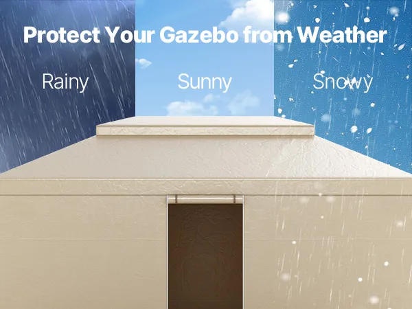 La nostra copertura per gazebo da esterno con rivestimento in PE bifacciale è resistente all'acqua, al sole e alla neve. Protegge il vostro gazebo durante le stagioni soleggiate, piovose e nevose, senza sbiadire o usurarsi.
