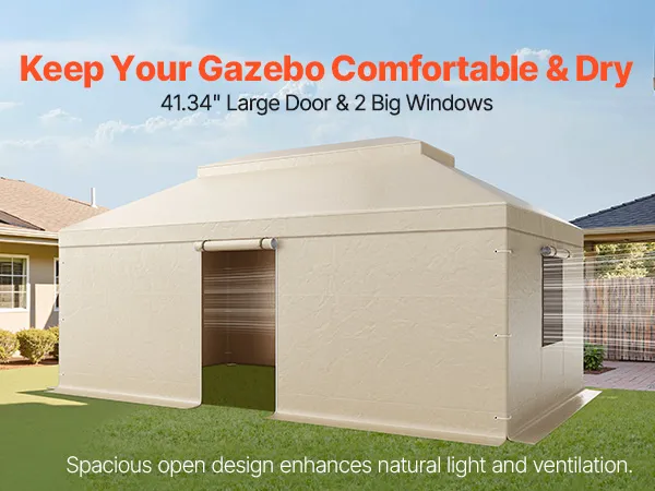 Installazione semplice: la copertura impermeabile per gazebo, con design a due pezzi e attacchi a strappo, semplifica il montaggio e la rimozione. È possibile staccare il tetto o i pannelli laterali separatamente