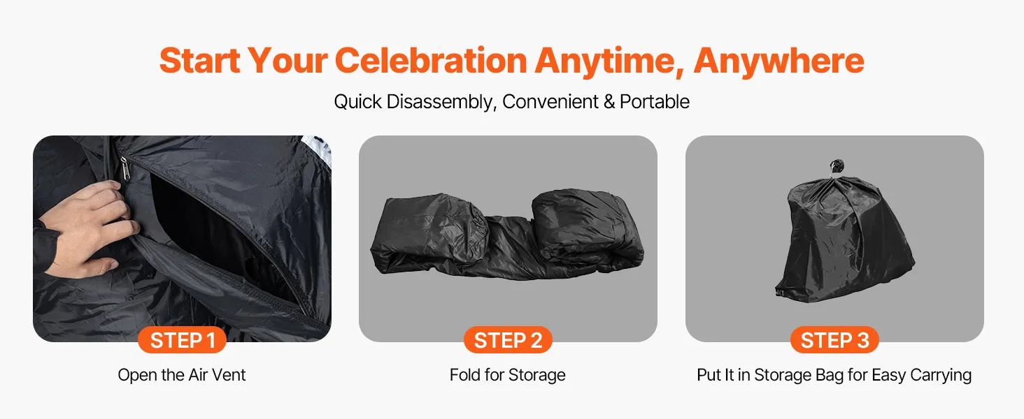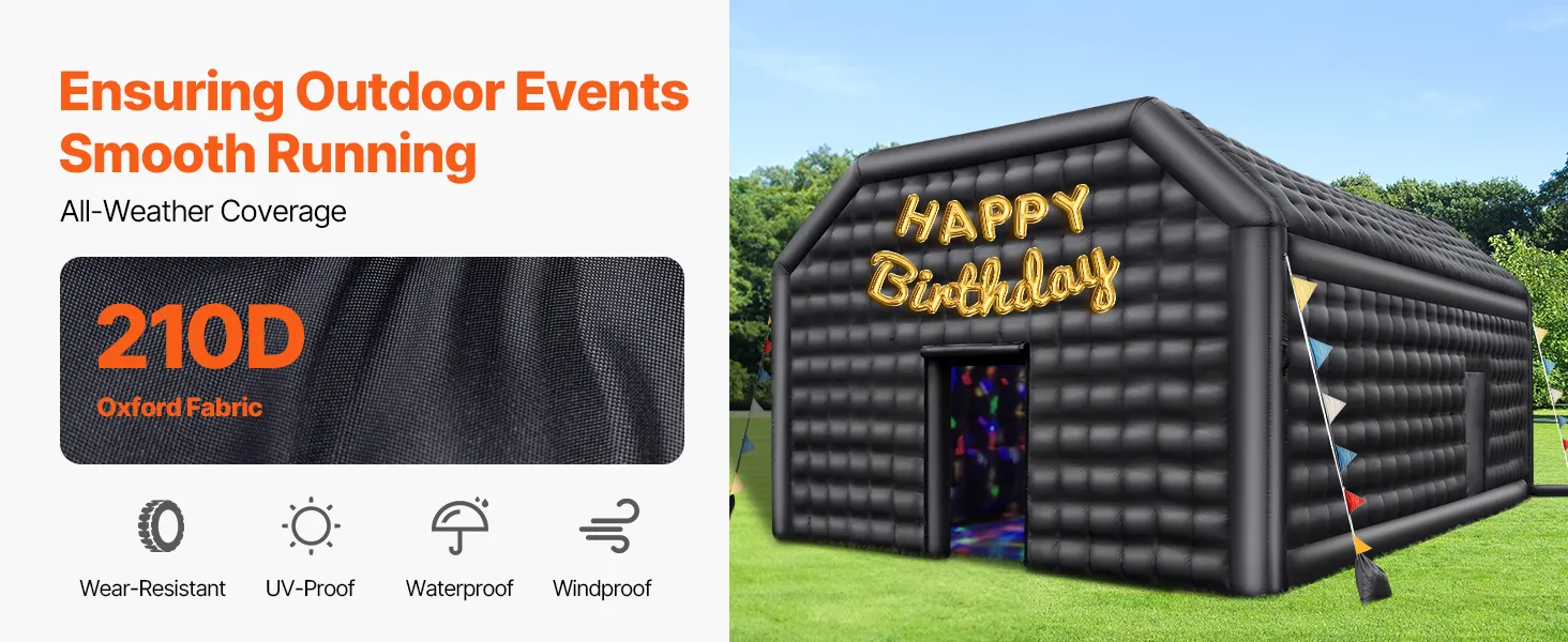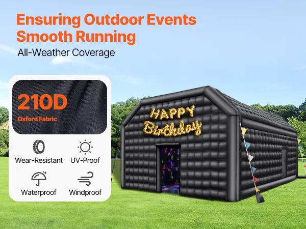 • Materiali ad alta resistenza: realizzata in resistente tessuto Oxford 210D, questa tenda gonfiabile per feste è impermeabile e antivento, in grado di resistere a cambiamenti meteorologici imprevisti (pioggia leggera o vento) per garantire il perfetto svolgimento dell'evento.