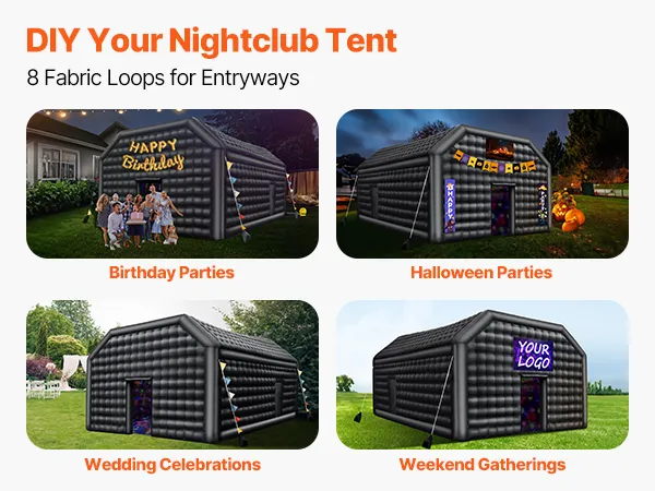 Questa tenda gonfiabile da discoteca da 581 piedi quadrati offre ampio spazio per eventi vivaci come matrimoni, feste, compleanni e Halloween. Con un montaggio rapido, un design stabile e un tessuto Oxford resistente, è il tuo partner affidabile per ogni occasione.