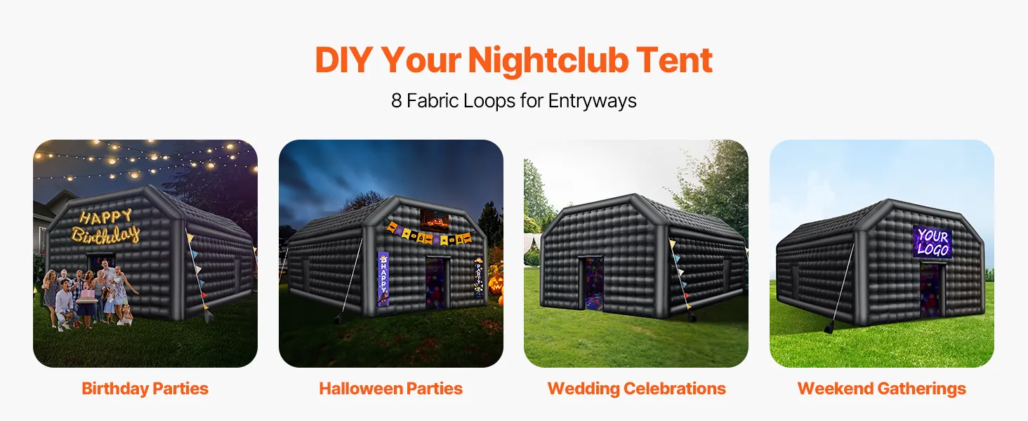 • Design spazioso: con 54 m² di spazio, questa discoteca gonfiabile è ideale per ospitare feste di compleanno, matrimoni, riunioni di famiglia e vari eventi.