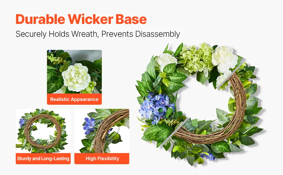 Realizzata in vimini di alta qualità, la base di questa ghirlanda per tutte le stagioni presenta un aspetto realistico e una struttura robusta. Fornisce una solida base per le tue decorazioni creative, mantenendo bellezza e stabilità per un uso duraturo.