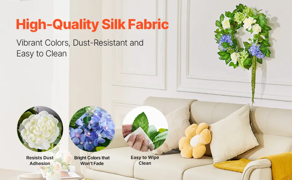 Realizzata in tessuto di seta di alta qualità, la superficie di questa ghirlanda per porta d'ingresso è liscia e resistente alla polvere, mantenendo colori vivaci senza sbiadire nel tempo. Può essere pulita delicatamente con un panno umido o lavata.