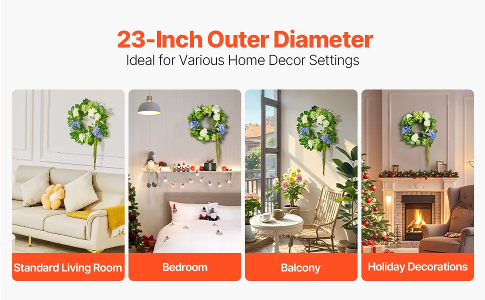 Con un diametro esterno di circa 23 pollici, questa ghirlanda artificiale è ideale per decorare soggiorni, camere da letto, balconi, decorazioni natalizie e altri spazi domestici, aggiungendo un tocco di eleganza naturale alla tua casa.