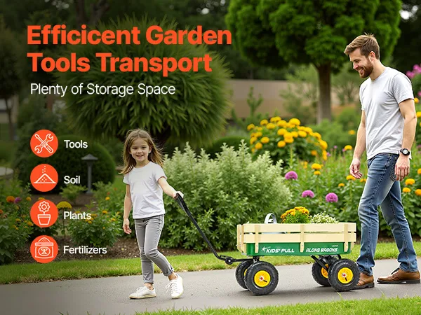Con dimensioni generose di 102 cm di lunghezza x 52,2 cm di larghezza x 52,1 cm di altezza, questo carrello trainabile per bambini offre ampio spazio per trasportare attrezzi da giardinaggio e altro ancora. Non c'è bisogno di fare più viaggi: tutto entra in una volta sola.