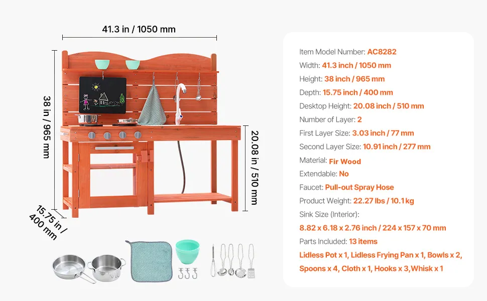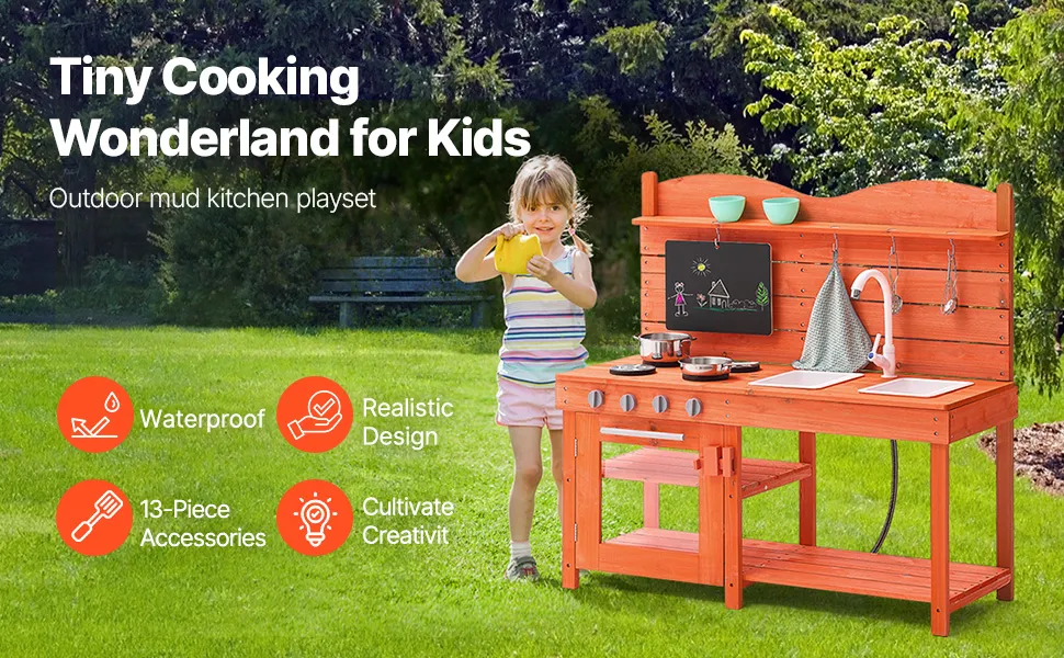 VEVOR Cucina di Fango per Bambini, Larghezza 1050 mm Set da Cucina Giocattolo in Legno, Set da Gioco per Negozio di Alimentari all'Aperto per Bambini Piccoli, Cucina da Gioco con Fornello, Lavello