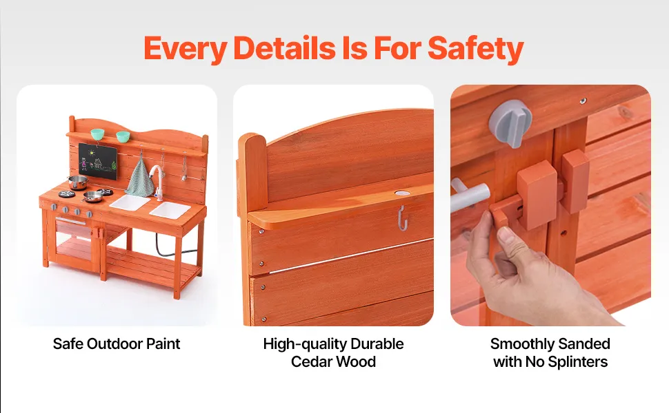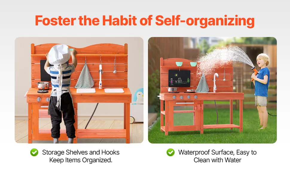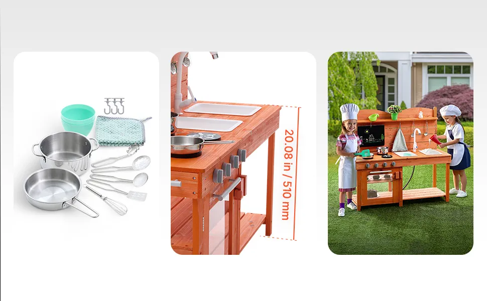 Un divertente regalo per lo sviluppo: questa cucina da gioco all'aperto è perfetta come regalo di compleanno o di Natale per i bambini, siano essi maschi o femmine. Con un'altezza del piano di lavoro di 20,47 pollici/520 mm, i bambini possono facilmente raggiungere e organizzare i loro giocattoli, il che aiuta a migliorare la coordinazione occhio-mano