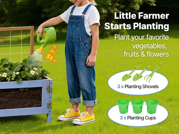 Aree gioco versatili: dotata di aree per cucinare, piantare e acqua con accessori, la cucina di fango per bambini all'aperto include 3 contenitori per piantare, 3 pale per piantare, 3 vasi, 2 spatole di legno e 1 lavandino