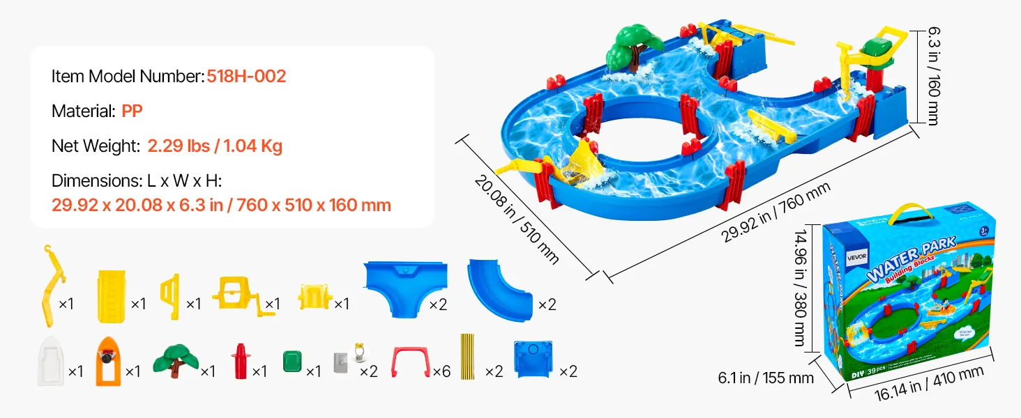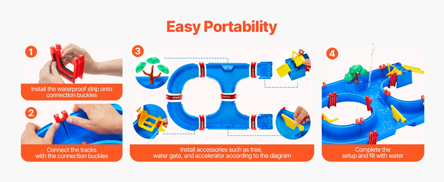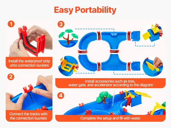 Il tavolo ad acqua per bambini VEVOR è dotato di 39 accessori, che permettono ai bambini di creare autonomamente i propri corsi d'acqua, guidare barche attraverso i cancelli, sperimentare attività divertenti come il carico e lo scarico di navi mercantili.