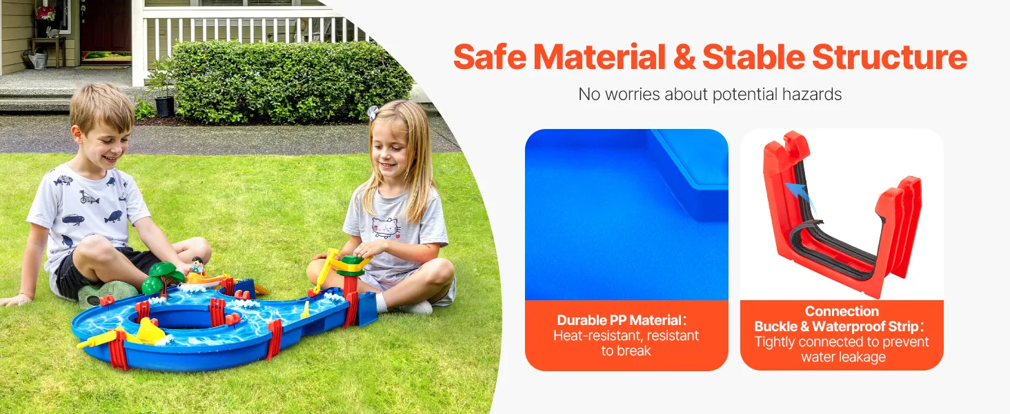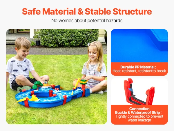 Realizzato in PP resistente e anti-crepa, questo tavolo sensoriale per attività per bambini garantisce un utilizzo sicuro. Le 6 fibbie di collegamento e le 12 strisce impermeabili assicurano una tenuta stagna, evitando perdite d'acqua e offrendo ai bambini un ambiente di gioco sicuro.