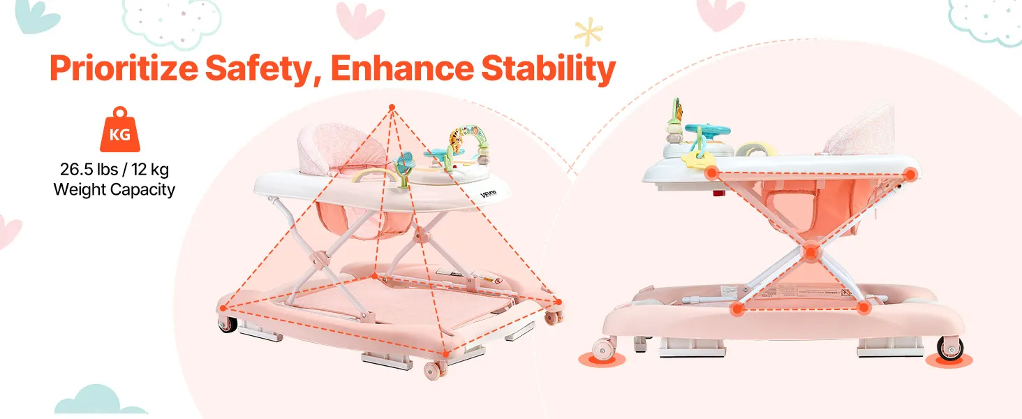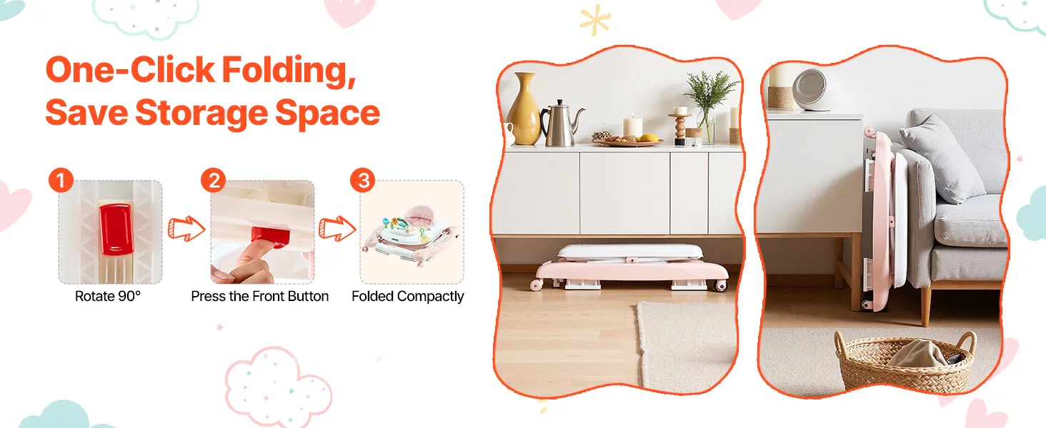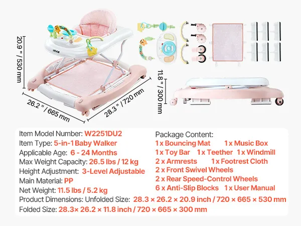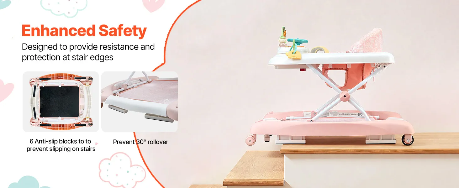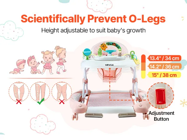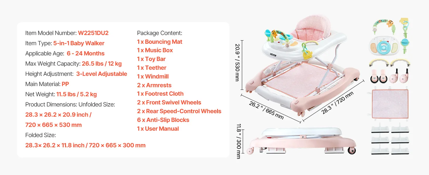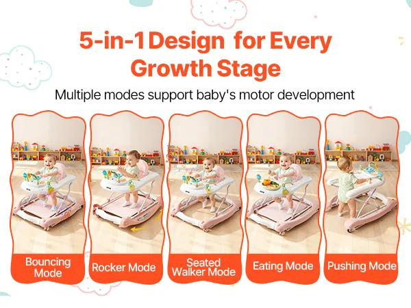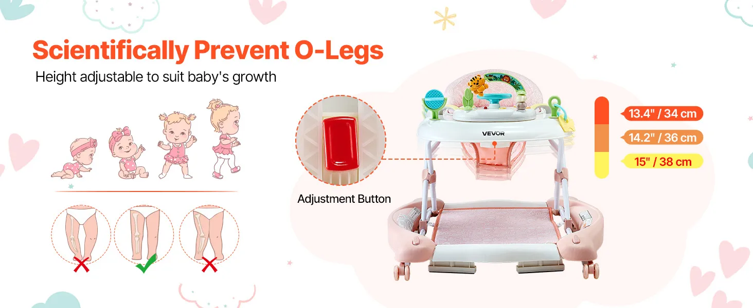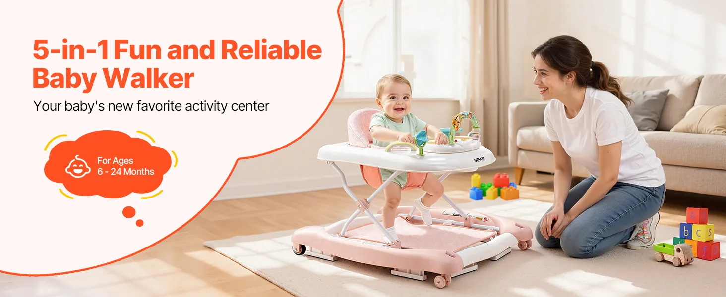 Il girello pieghevole 5 in 1 VEVOR è il compagno ideale per imparare a stare in piedi e camminare fin da piccolo, favorendo la coordinazione, la forza muscolare, l'equilibrio e l'esplorazione. Con 5 modalità di utilizzo, altezza regolabile, giocattoli coinvolgenti e facile da piegare.