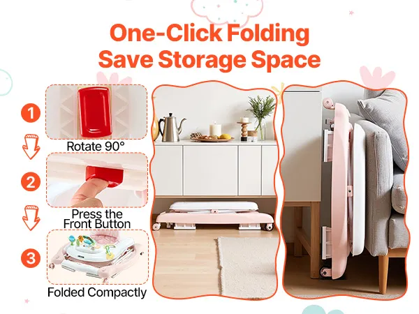 Altezza regolabile su 3 livelli: con 3 opzioni di altezza (13,4", 14,2" e 15,0"), il nostro girello pieghevole e centro attività si adatta alle esigenze di crescita del tuo bambino