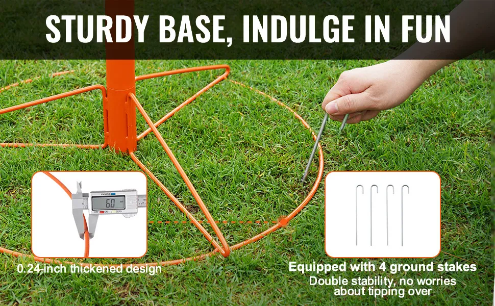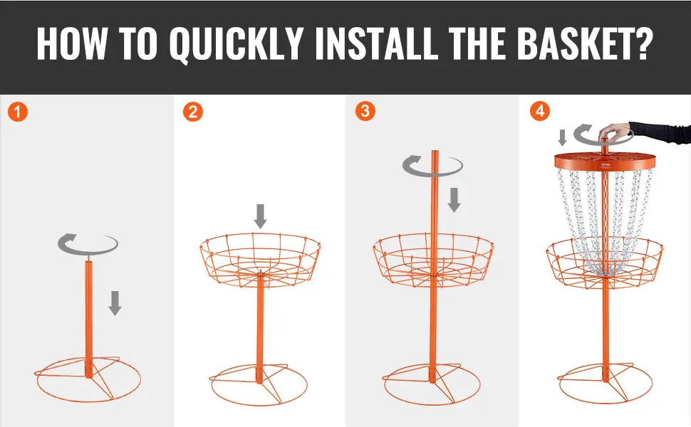 Il processo di installazione è rapido e semplice. Puoi installare facilmente il cestino da disc golf VEVOR. Ci vogliono solo pochi minuti perché il processo di assemblaggio è intuitivo. Ciò significa che può essere eseguito in circa 10 minuti; anche le donne incinte lo trovano facile da montare. Ecco perché non importa se desideri un'installazione gratuita. Questo cestino può anche essere facilmente smontato per il trasporto o lo stoccaggio. Puoi portarlo in luoghi diversi o riporlo quando non lo usi. Questa caratteristica aumenta la sua portabilità e praticità. I picchetti inclusi aiutano a fissarlo in posizione, garantendo stabilità durante l'uso. Il suo facile montaggio e smontaggio lo rendono in grado di servire tutti gli utenti di questo dispositivo.