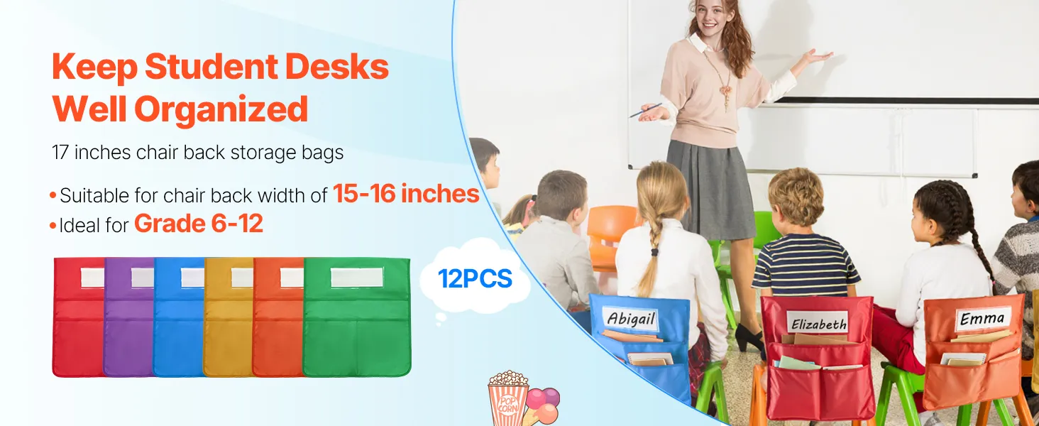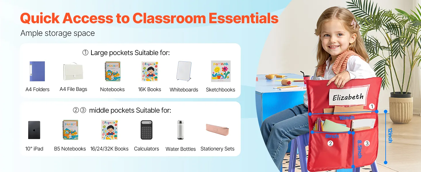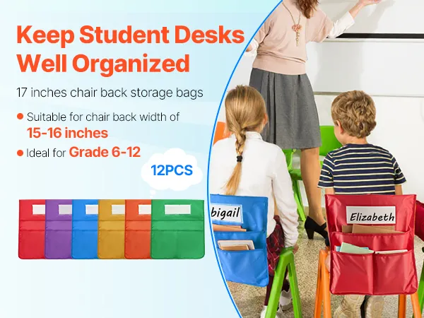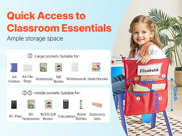 Opzioni versatili: disponibile in diverse dimensioni e quantità per soddisfare le esigenze della tua classe. L'organizer per il retro della sedia è ideale come regalo per il ritorno a scuola, per mantenere le scrivanie in ordine