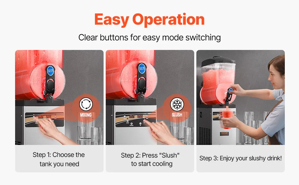 Per varie bevande: questa macchina per granita commerciale migliorata presenta un intervallo di temperatura regolabile di 5 ~ 50 ℉ / -15 ~ 10 ℃, consentendoti di controllare la morbidezza o la durezza delle tue bevande.
