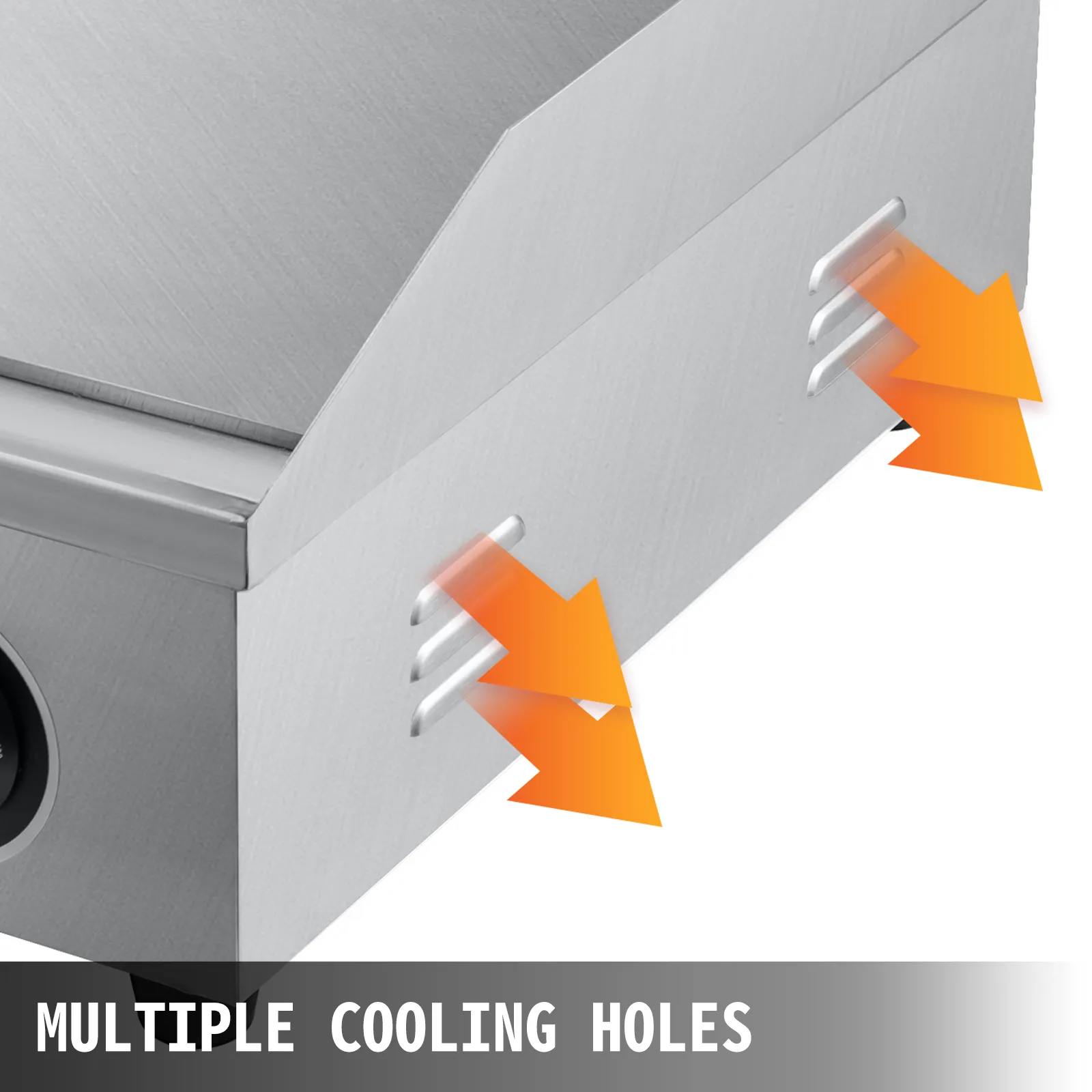 Le prese d'aria multiple su entrambi i lati dissipano efficacemente il calore e aiutano la griglia elettrica piatta per mantenere una temperatura ragionevole.