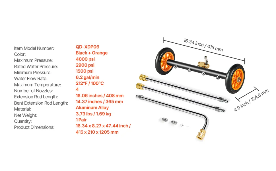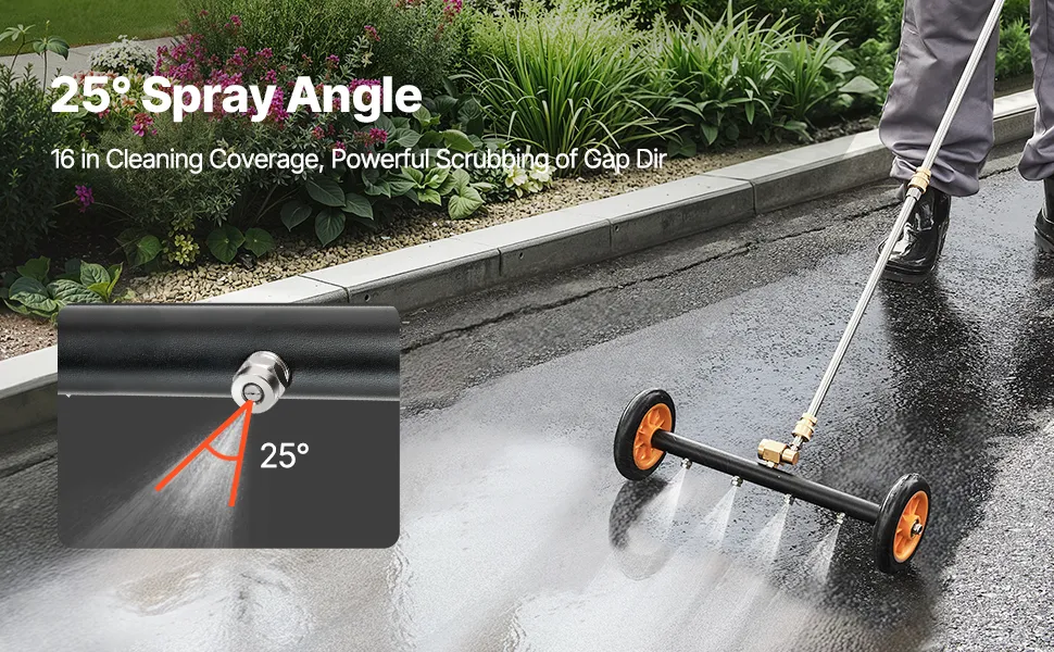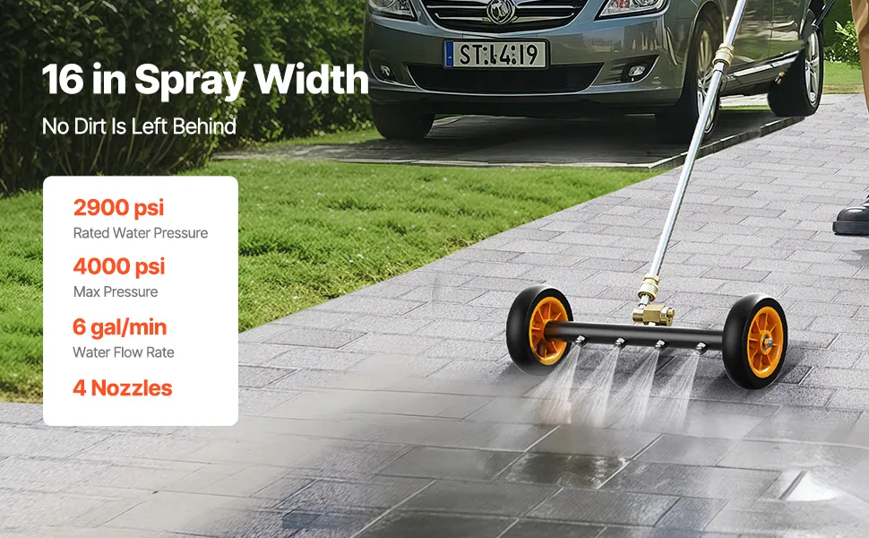 Pulizia rapida ed efficiente da φ16 pollici: con un'elevata portata di 6,2 gal/min e 4 ugelli di pulizia, questa idropulitrice per superfici da φ16 pollici assicura una copertura uniforme, senza lasciare macchie. Che si tratti di un lavoro di grandi dimensioni o di una pulizia quotidiana, la larghezza di pulizia di φ16 pollici semplifica il compito