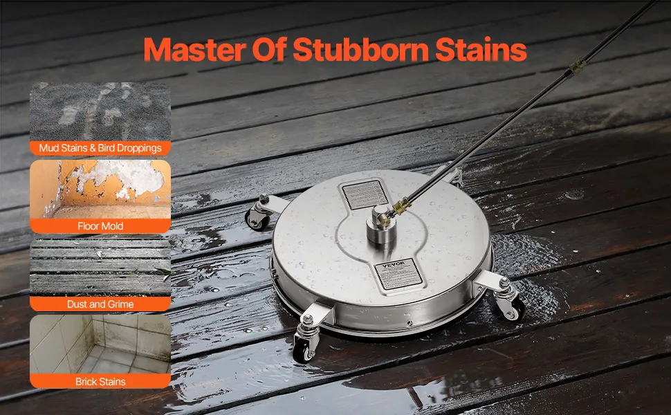 Dalle macchie di fango, escrementi di uccelli sui pavimenti, alle macchie di mattoni, questa idropulitrice per superfici gestisce tutto in una volta, senza bisogno di strofinare ripetutamente. Di' addio alle difficoltà con le macchie ostinate e alla preoccupazione per lo sporco.