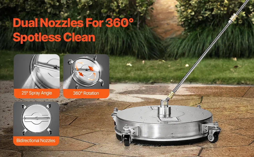 Pressione potente da 4000 PSI: con una pressione nominale di 2900 PSI e una pressione massima di 4000 PSI, gli ugelli rotanti doppi a 360° inferiori eliminano rapidamente sporco e detriti. Niente più problemi con le macchie difficili