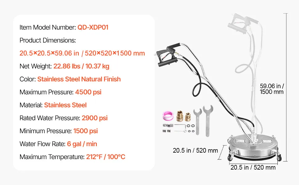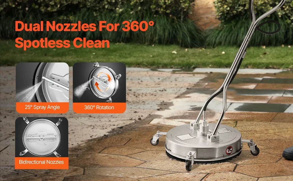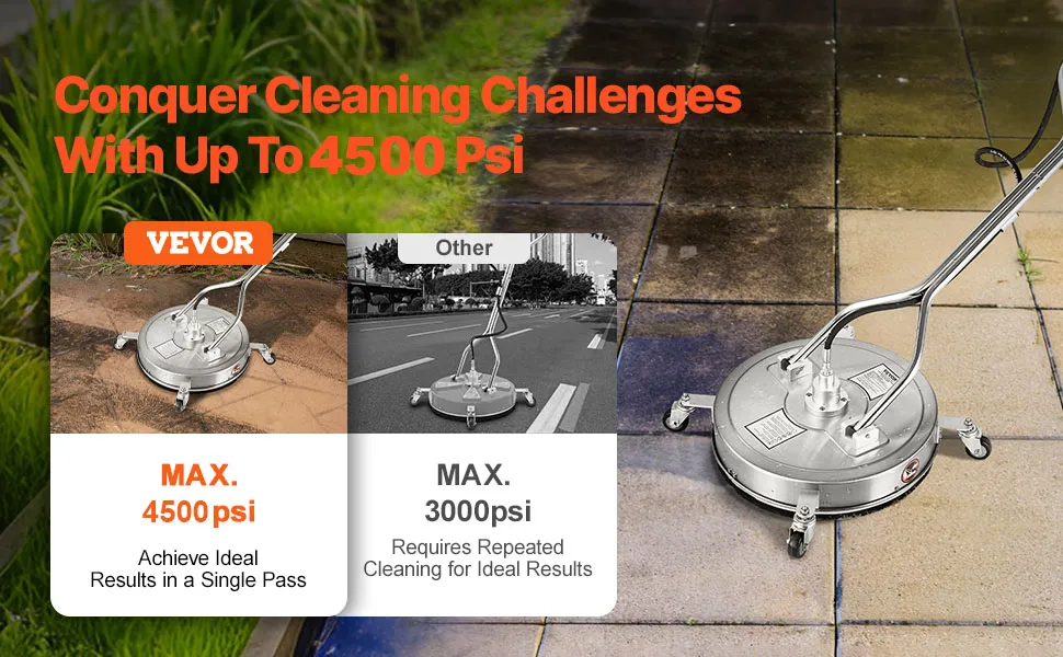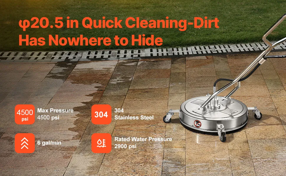 φ20 pollici Rapido ed efficiente: pulisci di più, più velocemente. Con una potente portata di 6 gal/min, questa idropulitrice per superfici da φ20 pollici pulisce ogni centimetro, rendendola ideale sia per grandi lavori che per la pulizia quotidiana. Porta a termine il lavoro in modo rapido e senza sforzo, risparmiando tempo ed energia