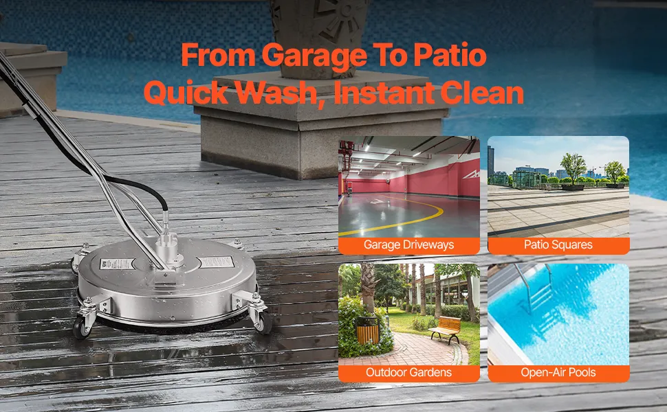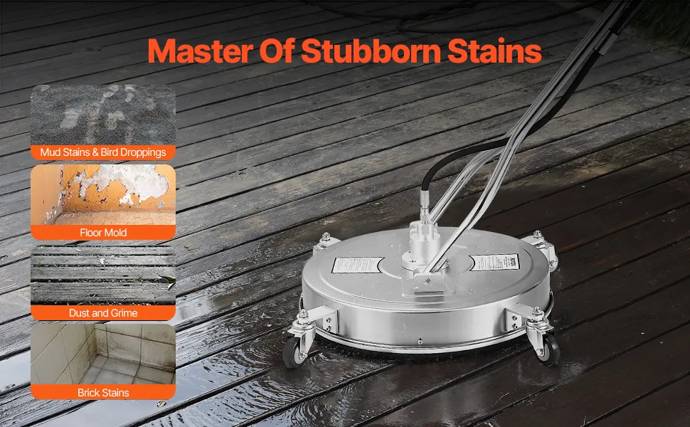 Dalle macchie di fango, escrementi di uccelli sui pavimenti, alle macchie di mattoni, questa idropulitrice per superfici gestisce tutto in una volta, senza bisogno di strofinare ripetutamente. Di' addio alle difficoltà con le macchie ostinate e alla preoccupazione per lo sporco.