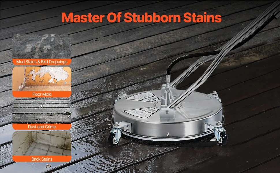 Dalle macchie di fango, escrementi di uccelli sui pavimenti, alle macchie di mattoni, questa idropulitrice per superfici gestisce tutto in una volta, senza bisogno di strofinare ripetutamente. Di' addio alle difficoltà con le macchie ostinate e alla preoccupazione per lo sporco.