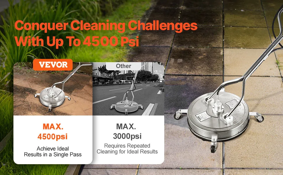 Alta pressione dell'acqua di 4000 PSI: con una pressione nominale di 2900 PSI e una pressione massima di 4000 PSI, questo accessorio per idropulitrice è dotato di doppi ugelli rotanti che rendono facile il lavoro di sporco e polvere. Le macchie difficili non hanno scampo