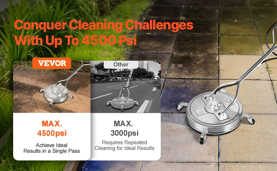 VEVOR Idropulitrice per Superfici in Acciaio Inossidabile con 4 Ruote, 275,8 Bar Max, Connettore Rapido da 3/8, 2 Ugelli a Spruzzo, Doppia Impugnatura, per Cemento, Patio, Marciapiede 550 mm