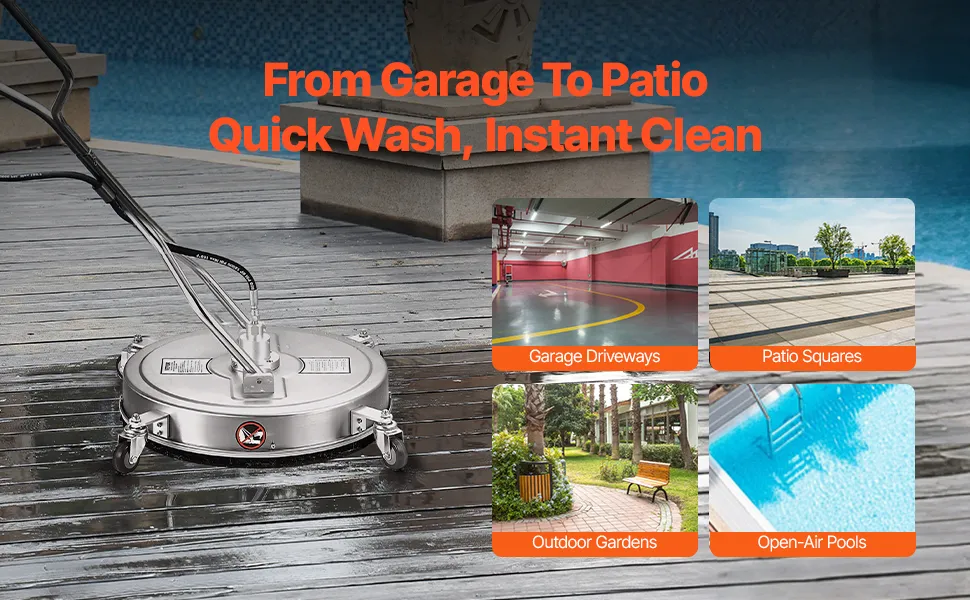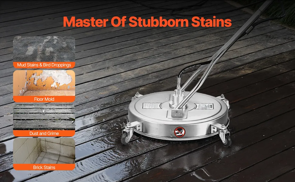 Dalle macchie di fango, escrementi di uccelli sui pavimenti, alle macchie di mattoni, questa idropulitrice per superfici gestisce tutto in una volta, senza bisogno di strofinare ripetutamente. Di' addio alle difficoltà con le macchie ostinate e alla preoccupazione per lo sporco.