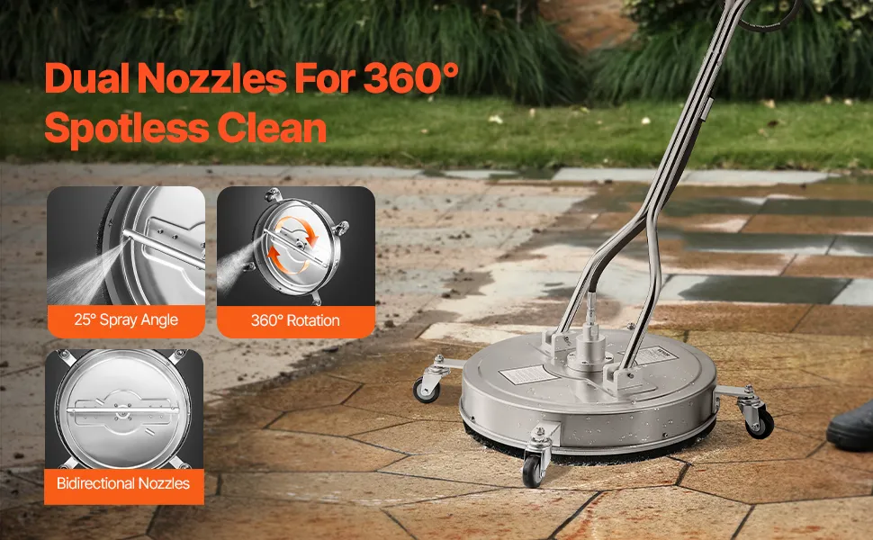 Alta pressione dell'acqua di 4000 PSI / 275,8 bar : con una pressione nominale di 2900 PSI e una pressione massima di 4000 PSI / 275,8 bar, questo accessorio per idropulitrice è dotato di doppi ugelli rotanti che rendono facile il lavoro di sporco e polvere. Le macchie difficili non hanno scampo