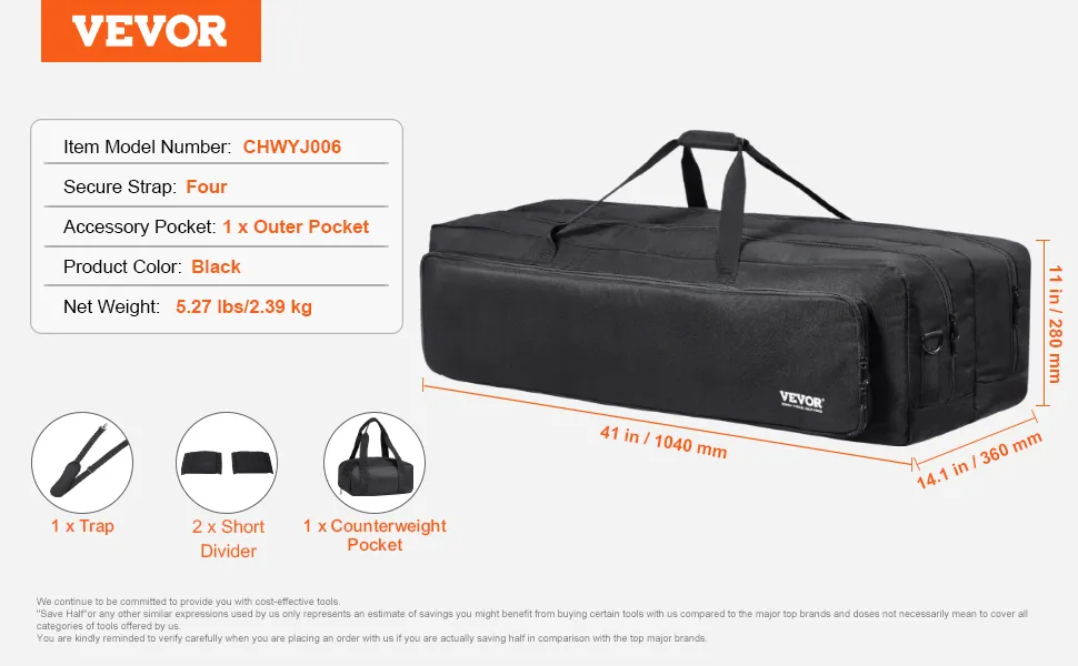 VEVOR Custodia per Telescopio 1040 mm Grande Borsa Portaoggetti per Telescopio, Fibbie Fisse, Multi-Tasca, Divisore Staccabile, Borsa per Trasporto del Telescopio Antiurto per Tubo Ottico, Treppiede