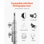 VEVOR C-stand with boom arm, max. height 330 cm, robust stainless steel photo light stand with adjustable height from 1463 to 2987 mm, 2 handle heads for studio monolight, softbox, reflector