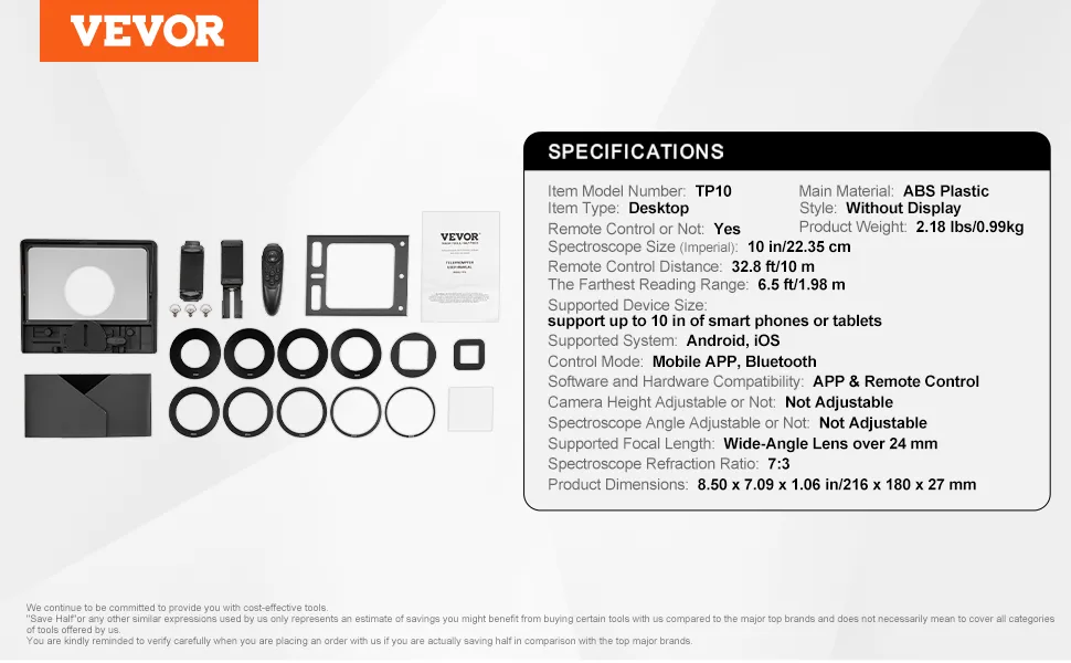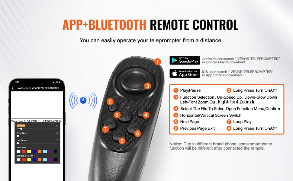 Controllo remoto: è possibile scaricare l'app teleprompter professionale VEVOR TELEPROMPTER o collegare il telecomando tramite Bluetooth per realizzare le funzioni di controllo remoto.