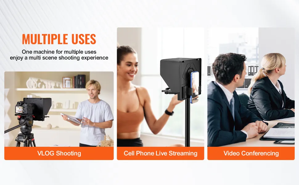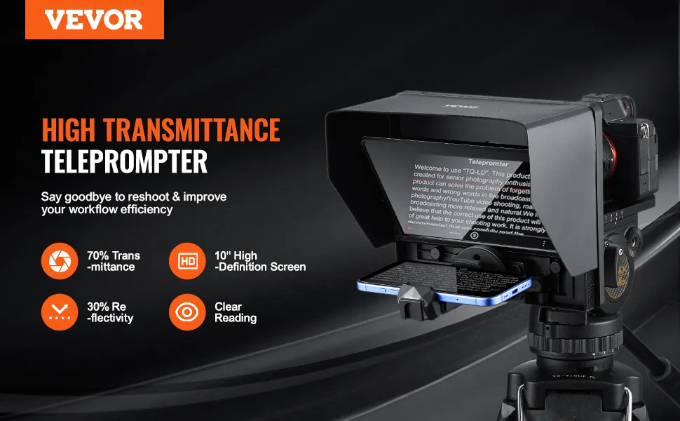 Questo gobbo professionale è adatto a scenari come studi, trasmissioni in diretta, interviste, ecc. Con un gobbo VEVOR avrai sempre gli script a portata di mano, migliorando le prestazioni della tua fotocamera.