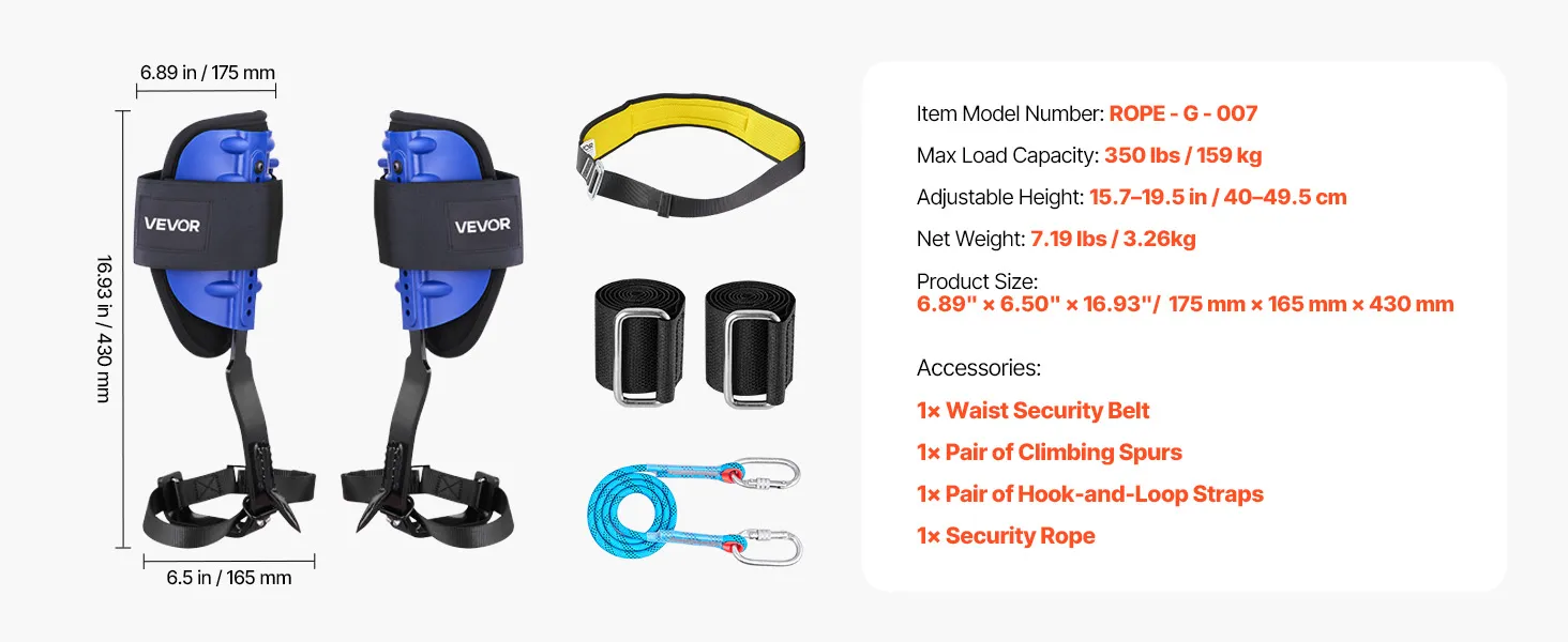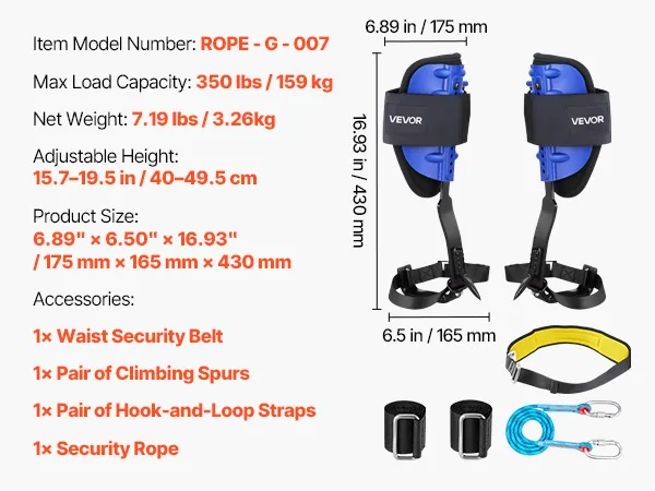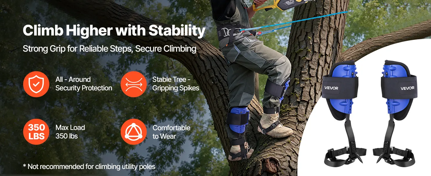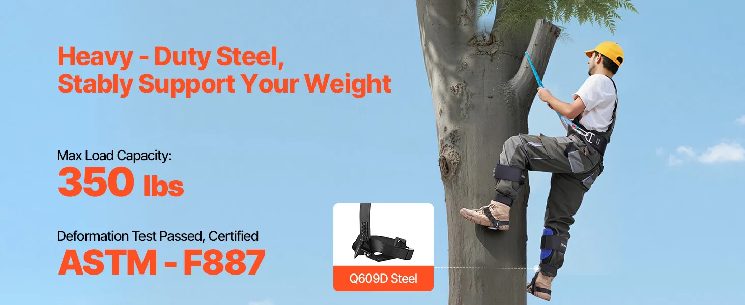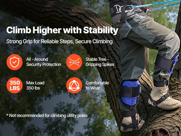 Realizzato in acciaio resistente, il set di punte per arrampicata sugli alberi supporta fino a 350 libbre. Testato ASTM F887 per la durevolezza, garantendo sicurezza in ogni arrampicata.