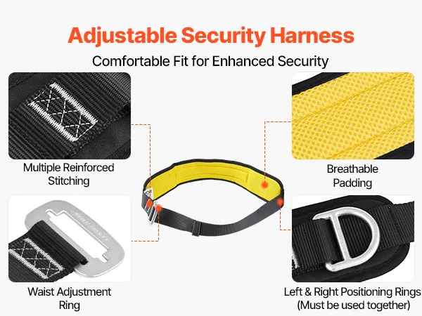 Vestibilità comoda: la nostra attrezzatura per l'arrampicata sugli alberi è dotata di una morbida imbottitura in EVA che assorbe gli urti e sostiene le gambe. Le piastre preformate per le cosce si adattano al corpo per un comfort duraturo